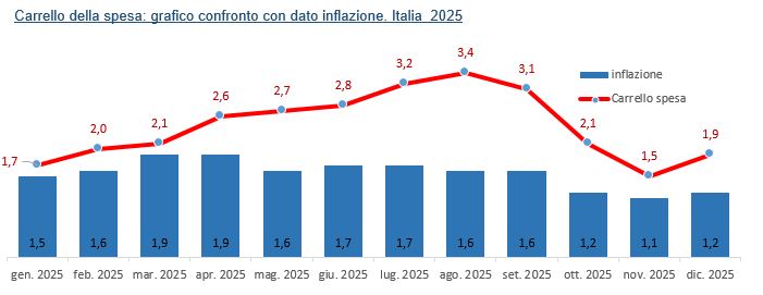 Nella pagina, viene presentata un'analisi sull'andamento del cosidetto "carrello della spesa".